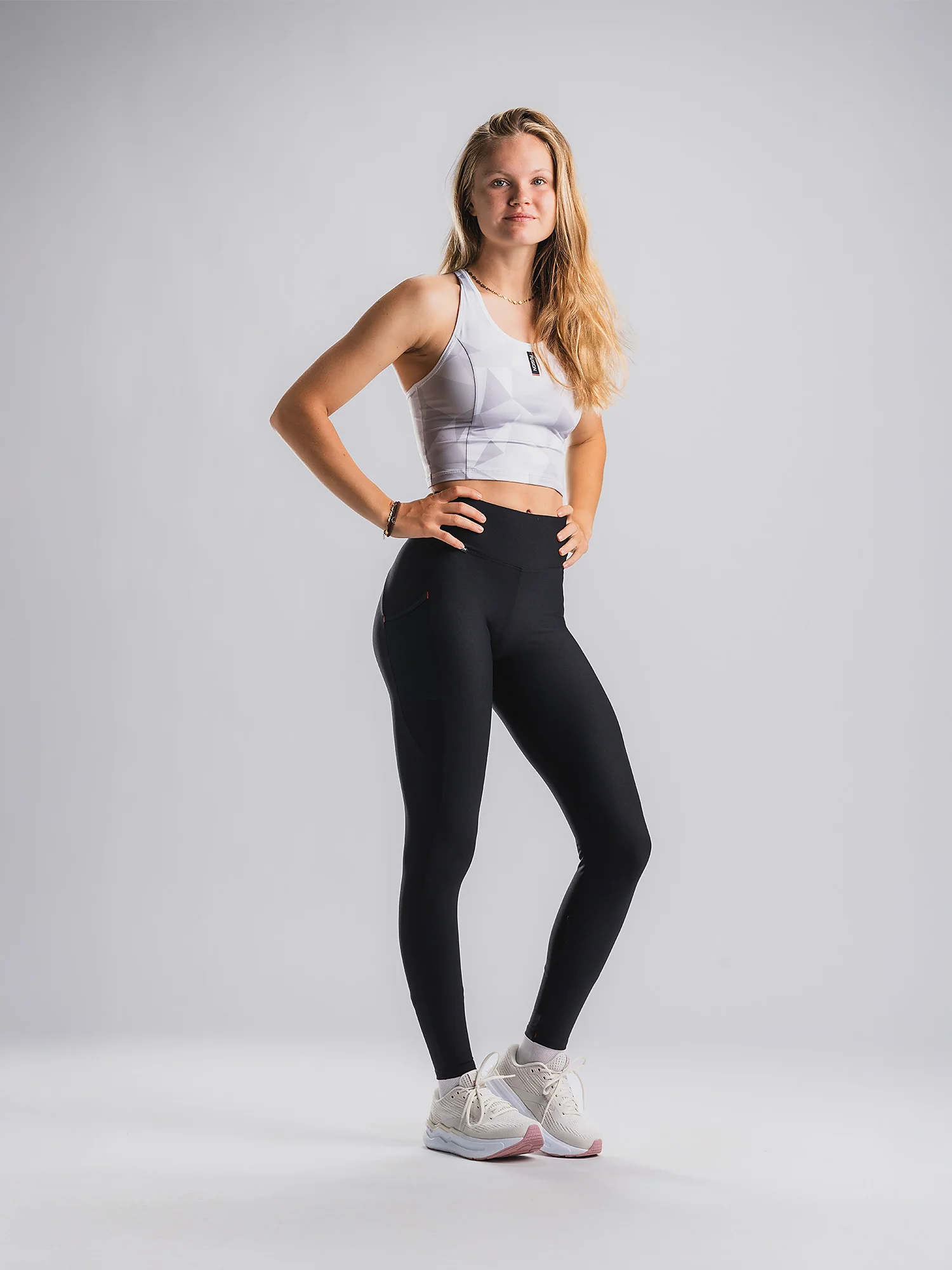 Die Tights sind mit funktionalen Taschen an den Oberschenkeln ausgestattet, die den Inhalt nah am Körper halten, ohne das Bewegungsmuster zu beeinträchtigen. Die Tights ist mit einem Keil im Schritt ausgestattet, was maximale Beweglichkeit gibt. Die Overlocknähte sorgen für mehr Dehnbarkeit und weniger Verschleiß bei Kontakt mit den Geräten. Da sie für das Fitnessstudio gedacht sind, haben wir die normalen Reflektoren am Unterschenkel weggelassen.